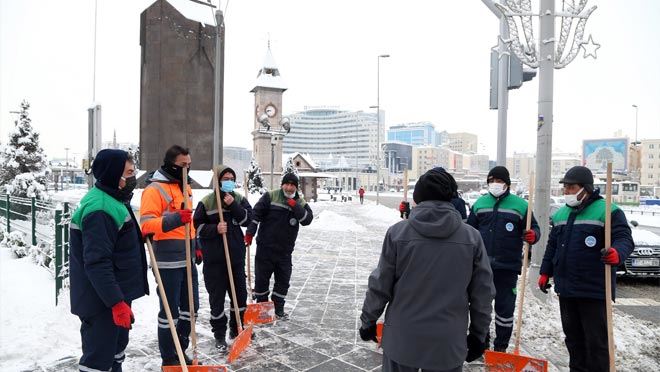 Merkezde ve tüm ilçelerde gece, gündüz demeden fedakârca karla mücadele çalışmalarını sürdüren Kayseri Büyükşehir Belediyesi ekipleri, ana arterler, cadde ve sokaklarda yol temizleme, tuzlama ve kar küreme çalışmaları yapıyor. Cumhuriyet Meydanı’nda kaldırım ve yaya yolu karla mücadele çalışmalarını denetleyen Büyükşehir Belediye Başkanı Dr. Memduh Büyükkılıç, ekiplere kolaylıklar diledi.