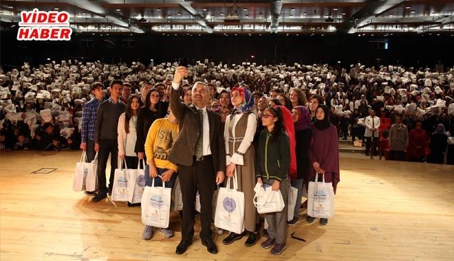Büyükşehir Belediye Başkanı Mustafa Çelik, konuşmasının ardından 20 bin öğrenciyi temsilen bir grup öğrenciye kaynak kitaplarını verdi. Başkan Çelik, kitap alan ve salonda bulunan öğrencilerle birlikte bizzat kendisi özçekim de yaptı.