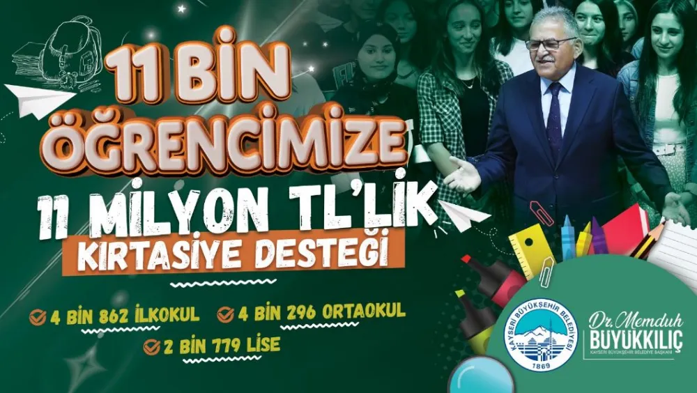Kayseri Büyükşehir Belediyesi 2024-2025 eğitim öğretim yılı için 11 bin 937 öğrenciye 11 milyon 416 bin 250 liralık kırtasiye yardımı yaptı.