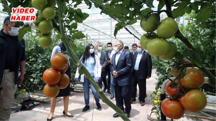 Başkan Büyükkılıç, “Merkezdeki beş ilçemizin çöplerinden oluşan katı atık depolama sahamızdaki yapılanma sonrası 4 bin metrekarelik kompost alanımızda gübre üretiyoruz. Sahada oluşan gazları ayrıştırarak metan gazını enerji santraline yönlendiriyor ve buradan elektrik üretiyoruz. Enerji santralinde ortaya çıkan 60 derece sıcaklığındaki suyu da 10 bin metrekare alana kurulu seramızda kullanarak topraksız tarımla yıllık 500 ton domates üretiyoruz” diye konuştu.