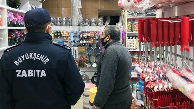 Tüm iş kolları ve yaşam alanları için belirlenen tedbirlere uyulması için 7/24 çalışan Büyükşehir Belediyesi Zabıta Ekipleri denetimlerini titizlikle sürdürüyor. Ekipler, farklı isimlerle faaliyet gösteren birden çok katta hizmet veren alışveriş mekanlarının havalandırmaya sahip olmayan bodrum katlarına müşteri alınmaması konusunda denetimler yaparak esnaflara uyarılarda bulundu.