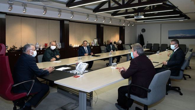 Başkan Büyükkılıç, Başkanlık Toplantı Salonu’nda, AK Parti İl Başkanı Şaban Çopuroğlu, Büyükşehir Belediye Meclisi İmar ve Bayındırlık Komisyonu Başkanı Bekir Yıldız, Melikgazi Belediye Başkanı Dr. Mustafa Palancıoğlu, Kocasinan Belediye Başkanı Ahmet Çolakbayrakdar, Talas Belediye Başkanı Mustafa Yalçın ve Hacılar Belediye Başkanı Bilal Özdoğan ile bir araya geldi.