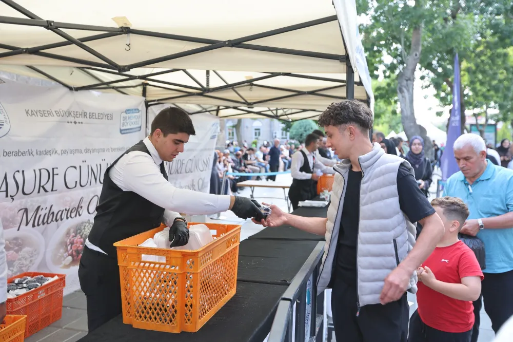 KAYTUR AŞ'nin hazırladığı toplam 5 bin kişilik paketli aşure, burada vatandaşlara ikram edildi.