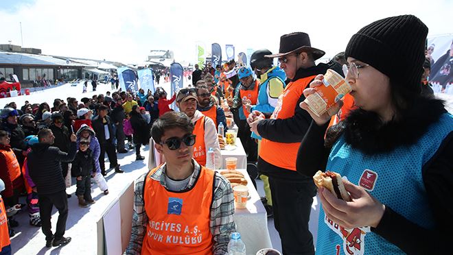 Erciyes’te kayak sporunun yanında insanların hoşça vakit geçireceği ve sosyalleşeceği farklı pek çok etkinliğe de imza atan Büyükşehir Belediyesi Erciyes A.Ş., geleneksel hale gelen ve sevilen etkinlik Sucukla Patla yarışmasını gerçekleştirdi. İlginin yoğun olduğu yarışmada, yarışmacılar en fazla sucuğu yiyebilmek için kıyasıya yarıştı.