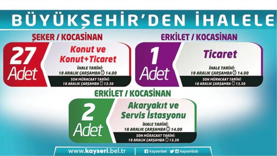 Büyükşehir Belediyesi, 18 Aralık Çarşamba günü saat 14.00’te önemli bir ihale yapacak. İhaleyle Şeker Mahallesi’nde bulunan 27 adet konut ve konut +ticaret alanı arsası satışa sunulacak. Şeker Mahallesi’ndeki 27 arsanın yanı sıra Erkilet Mahallesi’nde yer alan üç adet arsa da ihale kapsamında bulunuyor. Büyükşehir Belediyesi, Erkilet Mahallesi’ndeki 1 adet ticaret alanı arsası ile 2 adet akaryakıt ve servis istasyonu arsasını da satışa sunacak.