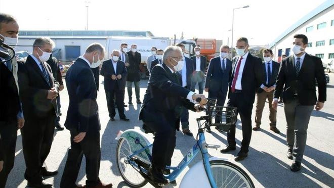 Büyükkılıç, Akıllı Bisiklet Paylaşım Sistemi’ni kullanarak bir süre bisiklet kullandı.