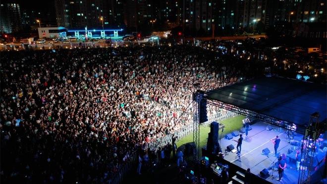 Konser devam ederken, sunucu ‘gençlerin dostu, her platformda gençlerin en büyük destekçisi, onların doktor ağabeyi Kayseri Büyükşehir Belediye Başkanımız Dr. Sayın Memduh Büyükkılıç beyefendiyi sahneye davet ediyorum’ diyerek, Başkan Büyükkılıç’ı sahneye çağırdı.