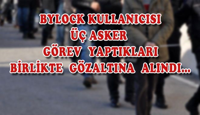 İl Jandarma Komutanlığında kısa dönem er olarak askerlik görevini yapan 3 kişi ilimizde yürütülen FETÖ/PDY soruşturması kapsamında askerlik öncesi ?Bylock´ kullandıkları gerekçesi sorgulanmak üzere gözaltına alındılar?