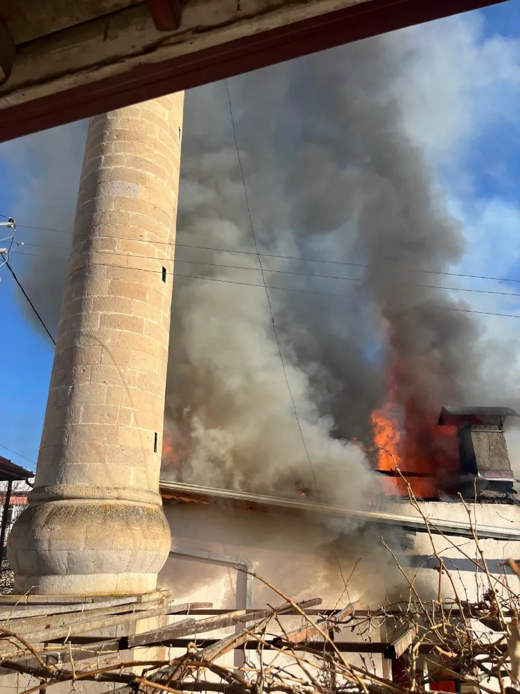 Ekiplerin müdahalesinin ardından söndürülen yangında cami kullanılamaz hale geldi.