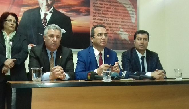 CHP Genel Başkan Yardımcısı Bülent Tezcan, 16 Nisan´da yapılacak referandum çalışmaları kapsamında Kayseri´de partisinin il binasınca CHP Kayseri Milletvekili Çetin Arık, İl Başkanı Feyzullah Keskin ve partilileri ile birlikte basın toplantısı düzenledi.