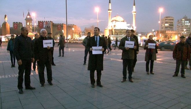 Cumhuriyet Halk Partisi TBMM´de devam eden Anayasa Değişikliği görüşmelerine tepki olarak ülke genelinde bir dakikalık ayağa kalkma eylemleri gerçekleştirdi. Kayseri İl Örgütü´de İl Başkanı Feyzullah Keskin önderliğinde Cumhuriyet Meydanı´nda bir araya gelerek eyleme destek verdi? İl Başkan Keskin eylemle ilgili olarak yaptığı değerlendirmede en yüksek derecede hayır çıkartmak için mücadele edeceklerini kaydetti?