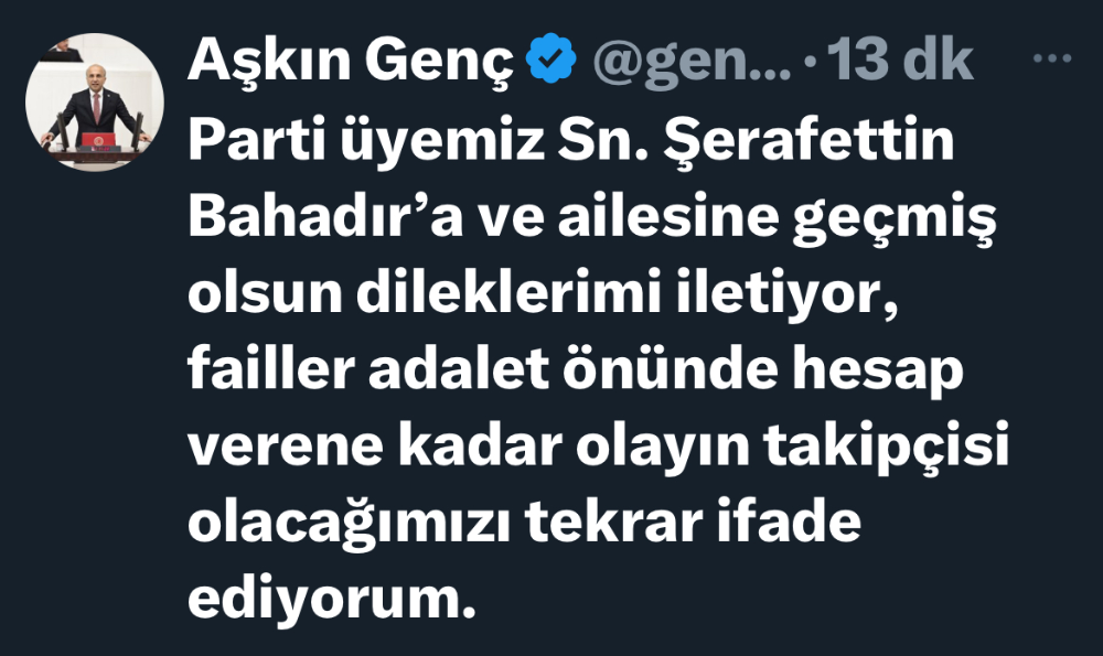 CHP Kayseri Milletvekili Aşkın Genç, sosyal medya hesabından yaptığı açıklamada, Bahadır’ın ağır yaralı olduğunu belirtti.