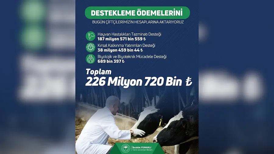 İbrahim Yumaklı, sosyal medya hesabından yaptığı paylaşımda, destek ödemelerine ilişkin detayları kamuoyuyla paylaştı. Yapılan açıklamada, farklı kalemlerdeki desteklerin çiftçilerin hesaplarına yatırılacağı bildirildi.