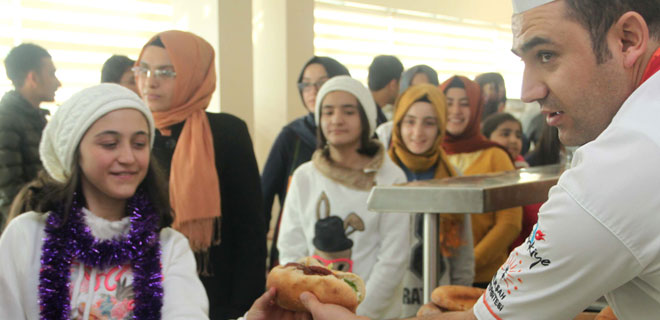 Programda üniversiteli ağabey ve ablalarıyla birlikte yemek yiyen çocuklara sürpriz hediyeler de verildi.
