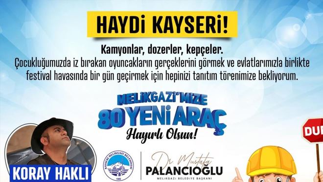 “Bunlardan bir tanesi de belediyemizin iş makinesi ve araç parkurunu güçlendirdik. Güçlendirmeye devam ediyoruz. Yarın saat 15.00'te Melikgazi Belediyemizin satın almış olduğu 80 iş makinesi ve aracın tanıtımını Mustafa Şimşek Caddesi üzerindeki Mix AVM'nin arkasındaki alanda yapacağız. Büyük bir alanda kepçe, greyder, kamyonlar, ilaçlama araçları, çöp toplama araçları ve farklı farklı araçların hepsini sergileyeceğiz. Çocukluğumuzda bizler oyuncak kamyon, kepçe ve greyderle oynayarak büyüdük. Muhtemelen sizlerin çocukları da bu araçlarla oynuyorlar. Çocuklar iş makinelerini çok sever, merak ederler. Ben buradan tüm velilerimize sesleniyorum. Çocuklarınızı, torunlarınızı alın programımıza getirin. Yarın saat 15.00'teki programımızda iş makinelerini kendilerine gösterelim hem de çocuklara güzel bir görsel eğitim verelim. Ayrıca yine yarın Koray Haklı konserimizde festival havasında bir gün geçirmek için hepinizi tanıtım törenimize bekliyorum.”
