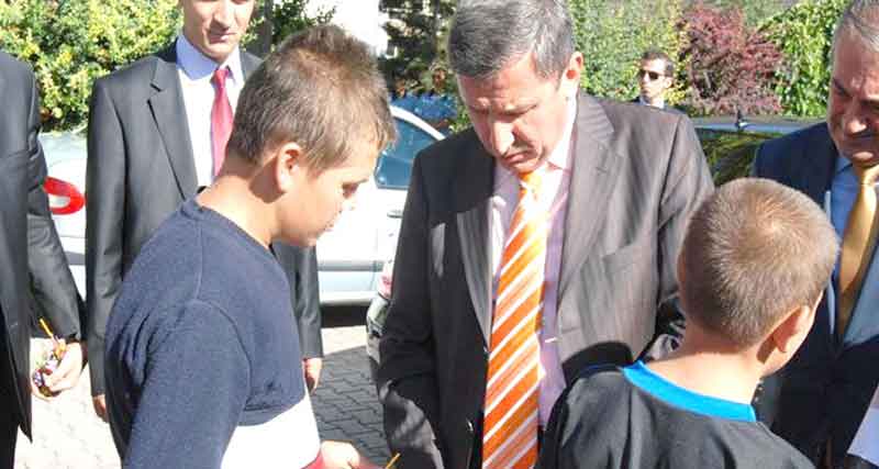 İl Özel İdaresi dönüşünde valilik girişinde çocukların topluca el sallamaları üzerine Vali Şerif Yılmaz araçtan inerek çocuklarla bir süre sohbet etti.