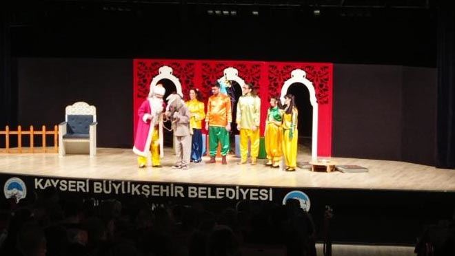 Kayseri Büyükşehir Belediyesi Konservatuarı tarafından 2022 Kültür-Sanat Etkinlikleri kapsamında Nasrettin Hoca Çocuk Tiyatrosu sahnelendi. Miniklerin doyasıya eğlendiği tiyatro oyununu yaklaşık 2 bin kişi izledi.