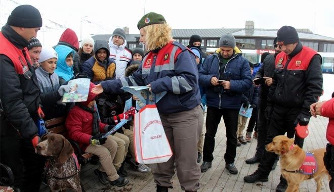 Toplum Destekli Güvenlik Hizmeti kapsamında düzenlenen projede yaklaşık 25 öğrenci, Erciyes Karakol Komutanlığı´na geldi. Burada yöresel yemek olan sucuk ekmek yiyen öğrenciler hayatlarında ilk kez geldikleri Erciyes Dağı´nda bulunan teleferiğe jandarma eşliğinde binerek gönüllerince eğlendi. Bomba Arama Köpeği ?Vadi´ ile Arama Kurtarma Köpeği ?Oje´ye de büyük ilgi gösteren öğrencilere eğiticileri tarafından bilgiler verildi. Öğrenciler, köpeklerle fotoğraf çektirmek için birbirleriyle yarıştı. Ayrıca İl Jandarma Komutanlığı Asayiş Şube Müdürlüğü Kadın ve Çocuk Suç Kısım Amirliği ekipleri öğrencilere bilgilendirici broşürler dağıttı. Öte yandan jandarma ekipleri öğrencileri, UTV kar motorlarıyla da pistte gezdirdi. Okul Müdürü Ali Geldim, öğrencilere hayatları boyunca unutamayacakları anlar yaşatan jandarma ekiplerine teşekkür ederek, ?İl Jandarma Alay Komutanlığı´nın sosyal etkinlikleri kapsamında okulumuz öğrencilerini Erciyes´e getirerek etkinlik gerçekleştiriyoruz. Kendilerine çok teşekkür ediyoruz, böyle etkinliklerin daha sık olmasını talep ediyoruz ve kendilerine çok teşekkür ediyoruz. Buraya gelen öğrencilerimiz içerisinde belki ömür boyu buraya gelemeyecek olanlar vardı. Bu etkinlik, onlar için çok büyük bir hediye oldu. Maddi hediyeden ziyade yaşamları boyunca unutamayacakları bir aktivite oldu? dedi.