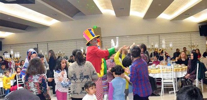 Gönüllerince eğlenen çocuklar, kendilerine doğum günü ve yeni yıl kutlamasını hazırlayan Gül Düzgün ile bol bol hatıra fotoğrafı çektirdi.