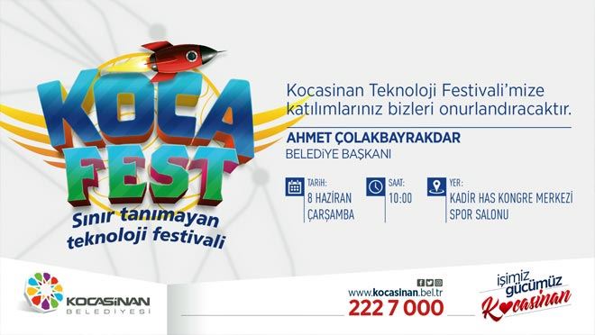 Kocasinan Belediyesi, Kocasinan İlçe Milli Eğitim Müdürlüğü işbirliğiyle gençlere yönelik düzenleyeceği Kocasinan Teknoloji Festivali - KOCAFEST 8 Haziran Çarşamba günü Kadir Has Kongre Merkezi Spor Salon’unda başlıyor.
