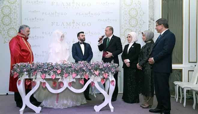 Cumhurbaşkanı Recep Tayyip Erdoğan ve eşi Emine Erdoğan ile Başbakan Ahmet Davutoğlu ile eşi Sare Davutoğlu´nun hep birlikte nikah şahitliği yaptığı Osman Hakan ve Aslı çiftinin nikahını ise Büyükşehir Belediye Başkanı Mustafa Çelik kıydı.