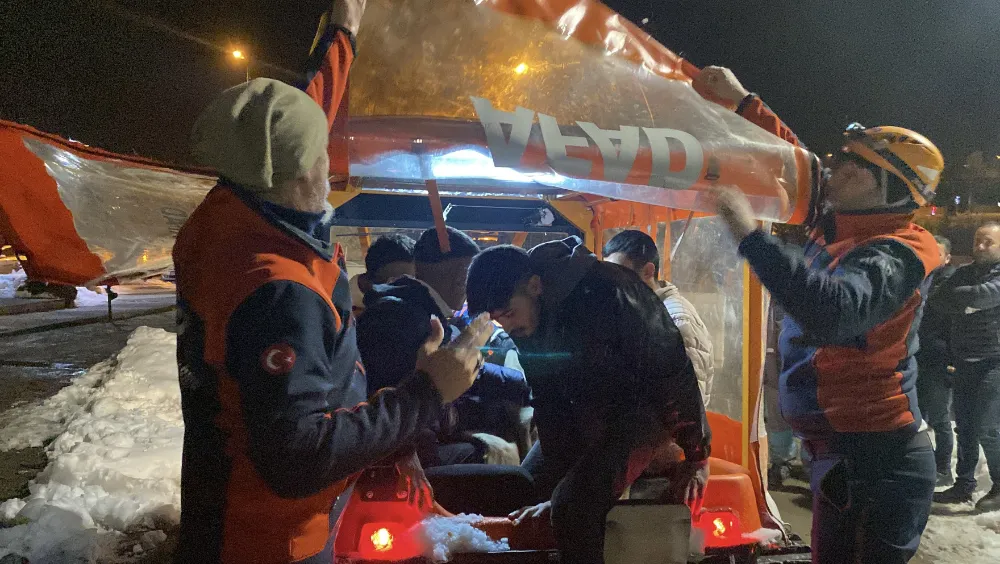 Bölgeye yönlendirilen AFAD ekipleri, dağda mahsur kalan arkadaşları paletli arazi aracı ile kurtardı.