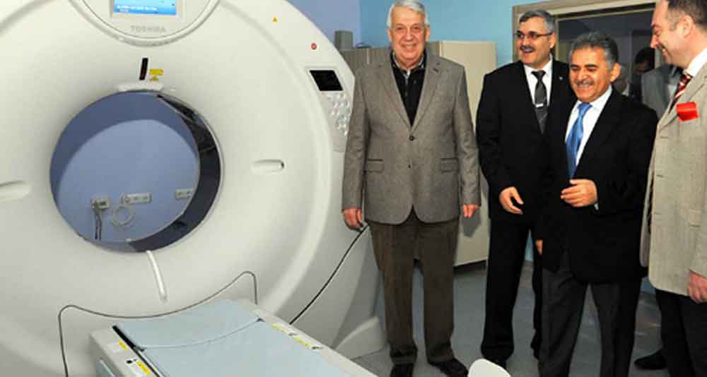 ''Yeni tomografi cihazımız Türkiye'de ilk kez hastanemize kuruldu. Bu yeni cihaz çekimde 0,5 milimetrelik ince kesitler alarak insandaki tüm damarsal yapıları gösterebilmekte. Yeni cihazla anjiyosuz koroner görüntüleme, periferik vasküler yapıların görüntülemesi, beyin anjiyografisi, kemik dansitometresi rahatlıkla yapılabiliyor. Ayrıca bu cihazla rutin çekimler daha hızlı ve daha kısa sürede yapılıyor. Çekimler daha önce bilgisayarlı tomografi cihazlarıyla verilen X ışını değerinin üçte biri ile yapılmaktadır. Diğer bilgisayarlı tomografi cihazları ile 20-30 saniyede çekilen akciğer tomografisi ve batın tomografisi yeni cihazla 1 saniye gibi çok kısa sürede çekilmektedir.''