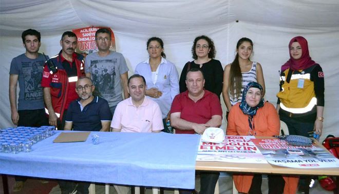 "Demokrasi nöbeti tutan vatandaşlarımızın karşılaşabileceği sağlık sorunlarına anında müdahale edebilmek ve destek olabilmek amacıyla 2 ambulans, 1 motosiklet ambulans, 1 UMKE (Ulusal Medikal Kurtarma) aracı ve UMKE çadırı ile Cumhuriyet Meydanı´ndayız" diyen İl Sağlık Müdürü Dr. Kılıç, "Demokrasi ve milli iradenin yanında olmak amacıyla Kayseri İl Sağlık Müdürlüğü İdarecileri ve personeli de Kayseri Cumhuriyet Meydanı´nda vatandaşların yanında yer aldı" diye konuştu.