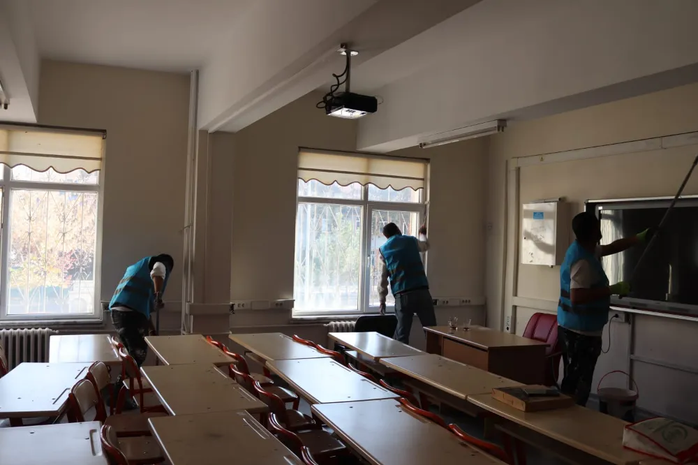 Kayseri Denetimli Serbestlik Müdürlüğünden yapılan açıklamaya göre, denetimli serbestlik tedbirine tabi olup kamuya yararlı işte ücretsiz çalışma yükümlülükleri bulunan yükümlüler, Atatürk Kız Mesleki ve Teknik Anadolu Lisesi'nin talebi doğrultusunda ara tatilde lise binasını boyadı.