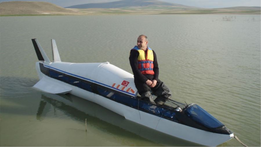 Kayseri’nin Yeşilhisar ilçesinde yaşayan 50 yaşındaki Ali Yiğit, demir ve sac kullanarak denizde gidebilen yüksek hızlı toplu taşıma aracı yaptı. Ali Yiğit’in test için baraj gölüne götürdüğü prototipi gören köylüler, ‘füze gördük’ ihbarında bulundu.