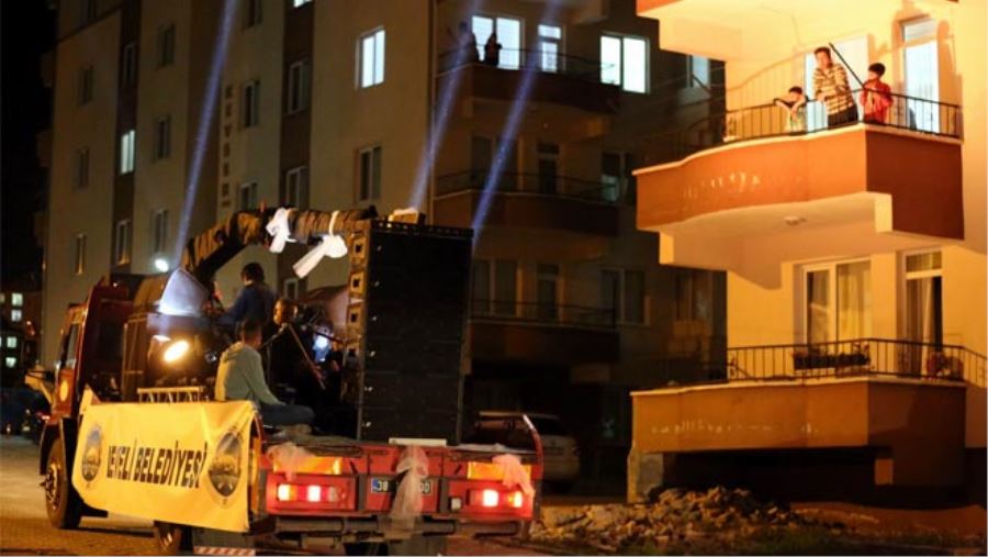 Develi’nin mahalli sanatçılarından Mehmet Sarımsı ve Yasin Kaman’ın seslendirdiği, türkü, ilahi ve şiirleri evlerinin balkonlarından dinleyip eşlik eden Develililer, bu güzel hizmetlerinden dolayı Cabbar Başkana ve emeği geçenlere teşekkürlerini ilettiler.