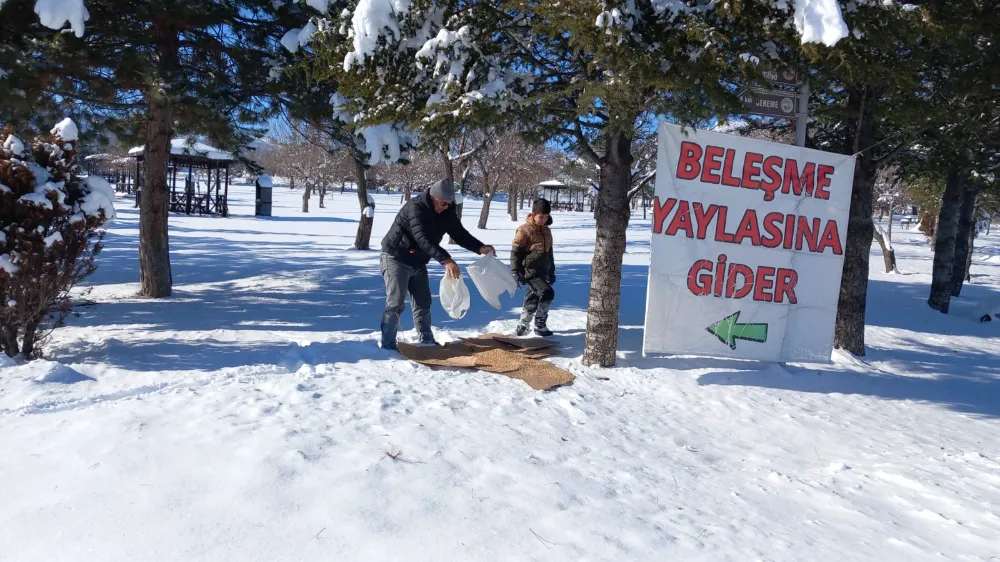 Zorlu kış şartlarında doğadaki canlıları unutmayan bu örnek davranış, Erciyes eteklerinde yürekleri ısıtan görüntüler oluşturdu.
