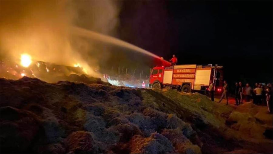 Develi ilçesine bağlı Gazi Mahallesi’nde meydana gelen saman yangınında alevler kara geceyi gün gibi aydınlattı.