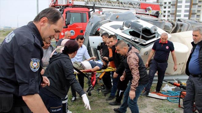 Edinilen bilgiye göre, Kuzey Çevre Yolu Kayseri - Sivas karayolu girişinde 38 BR 994 plakalı beton mikseri, sürücüsü Mehmet A.'nın (40) direksiyon hakimiyetini kaybetmesi sonucu yoldan çıkarak devrildi. Çevredeki vatandaşların ihbarıyla olay yerine polis, sağlık ve itfaiye ekipleri sevk edildi. Ekipler, devrilen mikserin içerisinde sıkışan Mehmet A.'yı kurtarmak için yoğun çaba sarf etti. Ekiplerin yaklaşık 20 dakikalık çalışma sonucu Mehmet A., mikserin içerisinden çıkarılarak ambulansla Kayseri Şehir Hastanesi'ne sevk edildi. Mehmet A.'nın hayati tehlikesinin bulunduğu öğrenildi. Öte yandan çevrede bulunan bir vatandaş, ekiplerin çalışmasını izlerken, sürücünün sağ kurtarılması için dua etti.