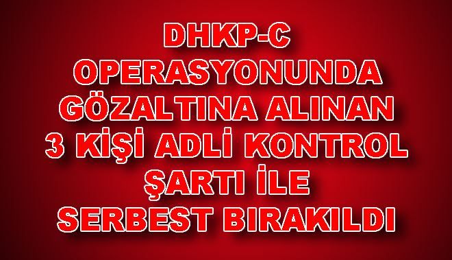 Kayseri Emniyet Müdürlüğü´ne bağlı Terörle Mücadele Şube Müdürlüğü ekipleri tarafından yapılan operasyonda DHKP-C örgütüne üye oldukları gerekçesiyle gözaltına alınan 3 zanlı adli kontrol şartı ile serbest bırakıldı.
