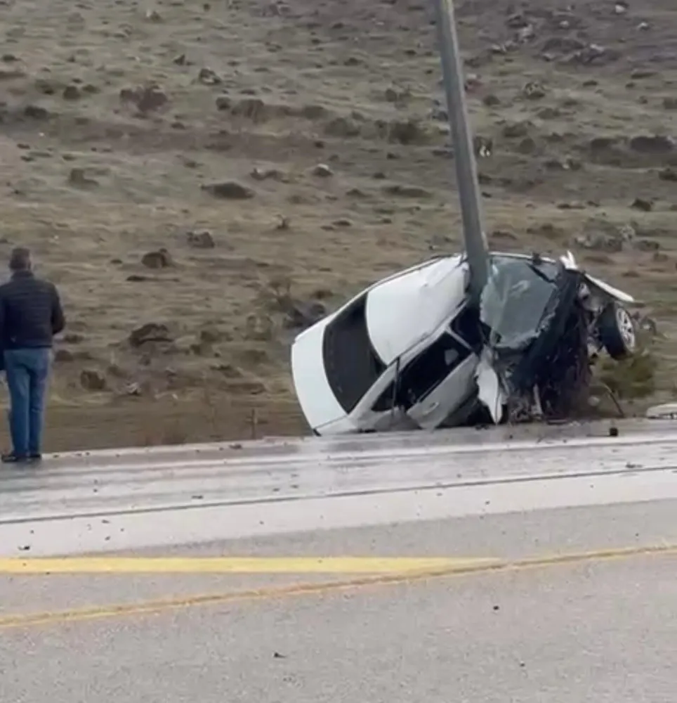 Kayseri’nin Develi ilçesinde direğe çarpan otomobil ortadan ikiye katlanırken, sürücü yaralandı.