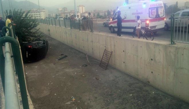 Kayseri´de direksiyon hakimiyeti kaybolan araç kanala uçtu. Kazada araç sürücüsü yaralandı.