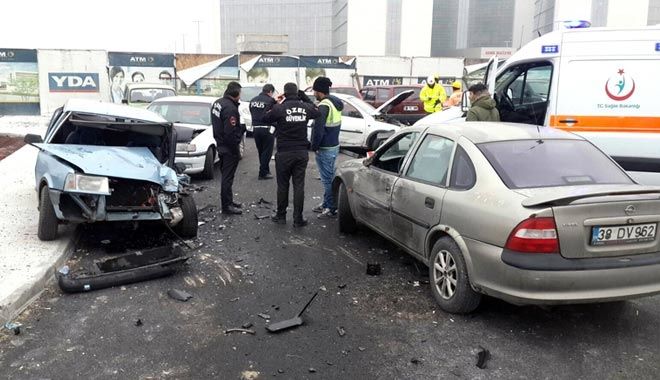 Kayseri´de sürücüsünün direksiyon hakimiyetini kaybetmesi sonucunda kaza yapan aracın çarptığı 3 otomobilde hasar meydana geldi. Kaza anı bir iş yerinin güvenlik kamerası tarafından saniye saniye görüntülendi.