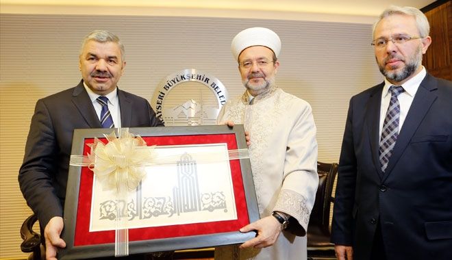 Ziyarette Başkan Mustafa Çelik´e görevinde başarılar dileyerek sözlerine başlayan ve Kayseri´de olmaktan bahtiyarlık duyduğunu dile getiren Mehmet Görmez, açılışı için geldiği Dini Yüksek İhtisas Merkezi ve ülkemizdeki ilk uluslararası İmam Hatip Lisesinin şehrimizde açılmış olması nedeniyle Kayserililere teşekkür etti. Şehirlerin manevi hayatı üzerinde de duran Görmez, "Belediyecilik şehirlerin altyapısını kurmaya çalışır. O şebekeler önemlidir; ama daha önemli olan kalpler arasındaki merhamet şebekesidir. Kayseri, müteşebbislerin çok olduğu gelişmiş bir şehir. Bunu manevi bir güçle desteklediğimiz zaman anlamlı olur. Şehirlerin manevi hayatı ne kadar güçlü olursa imar da o kadar güzel olur" dedi.