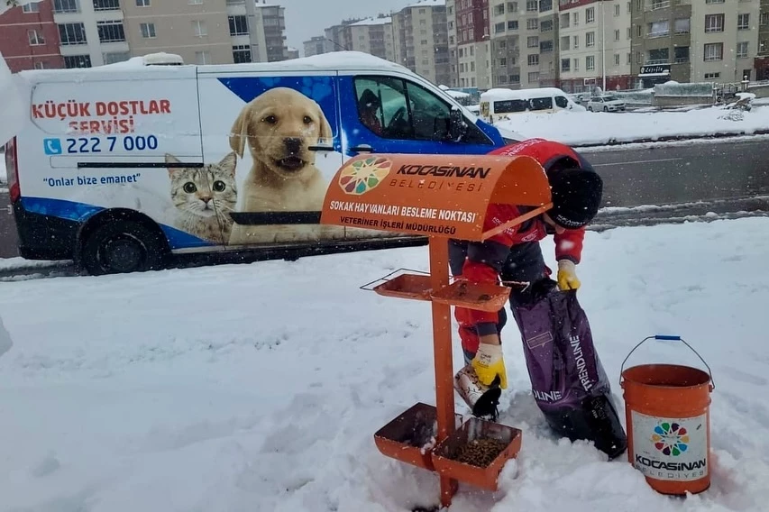 Kocasinan Belediyesinden yapılan yazılı açıklamaya göre, kar ve dondurucu soğuğun etkili olduğu kentte yiyecek bulmakta zorlanan sahipsiz köpek ve kediler ile yaban hayvanları için çalışma yapıldı.