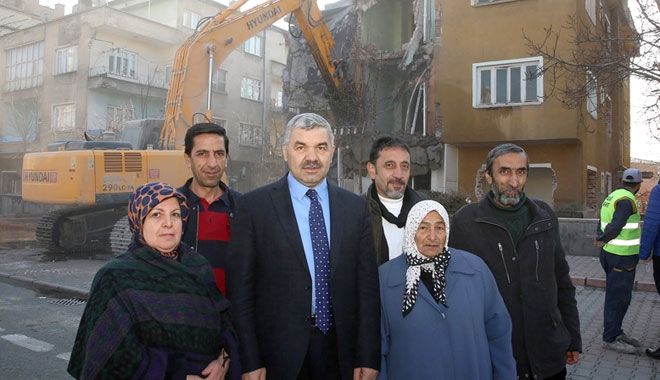 Yıkımı yapılan binanın hak sahipleri de Başkan Çelik´e teşekkür ederek, "Devletimize ve belediyemize güveniyoruz. Beş vakit namazımızda dua ediyoruz" ifadelerini kullandılar.