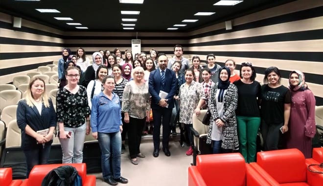 Öğrencilerin sorularını da cevaplandıran Dr. Apaydın´a konferans sonunda Hemşirelik Bölüm Başkanı Prof. Dr. Hülya Uçar tarafından plaket takdim edildi.