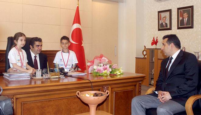 Vali Yardımcısı Mehmet Emin Avcı, Çevre ve Şehircilik İl Müdürü Namık Güver ve kısa adı TEMA olan Türkiye Erozyonla Mücadele Vakfı İl Temsilcisi Abdülkadir Dağlı ile çevre yöneticilerinin katıldığı ziyarette, Vali Düzgün, çevre gönüllüsü 3. sınıf öğrencisi Aybüke Dağlı ve 1. sınıf öğrencisi İhsan Kayra?ya madalya ve hediyelerini verdi.
