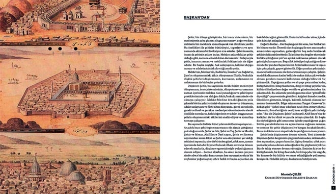 Kayseri Büyükşehir Belediye Başkanı Mustafa Çelik, dergideki yazısında şehirleri bir dünya görüşünün, bir inanç sisteminin ve bir medeniyetin arka planını oluşturan manevi değer ve dinamiklerin bir mekanda somutlaşarak var oldukları yer şeklinde tanımladı. Başkan Çelik, şehrin insanda, insanın da şehirde anlam bulduğunu belirtti.