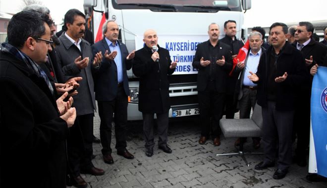 Eğitim Bir Sen Kayseri Şubesince Bayırbucak Türkmenlerine destek sağlamak maksadı ile başlatılan yarım kampanyası meyvalarını vermeye başladı. Kampanya sürecinde toplanan paralarla alınan unlar tertiplenen uğurlama töreni ile Bayırbucak Türkmenlerine ulaştırılmak üzere yola çıkartılırken törende konuşan Eğitim Bir Sen Şube Başkanı ve Memur ?Sen İl Temsilcisi Aydın Kalkan ?Bayırbucak bizlerden yardım beklemektedir. Bizler Anadolu´nun, Kayseri´nin vefalı insanları olarak nerde bir sıkıntı ve adaletsizlik varsa orada olmaya devam ediyoruz? ifadesini kullandı?