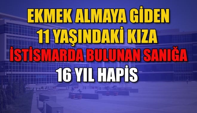 Kayseri´de evinden ekmek almaya çıkan 11 yaşındaki kız çocuğuna cinsel istismarda bulunduğu iddiasıyla tutuksuz yargılanan 64 yaşındaki sanık, mahkemece 16 yıl 1 ay 15 gün hapis cezasına çarptırılarak tutuklandı.