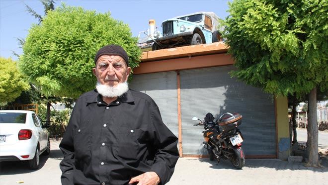 1970'te aldığı ve 30 yıl boyunca kullandığı aracının artık çalışmadığını belirten Helvacıoğlu, pikabını koruma amaçlı garajın üstüne yerleştirdiğini belirtti.