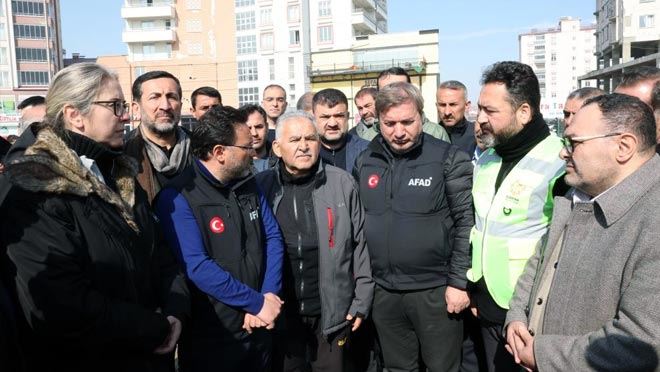 Deprem bölgesi Kahramanmaraş’ın Elbistan ilçesinde ‘Konteyner Çarşı’ çalışmaları aralıksız sürüyor. Bölgede hayatın yeniden normale dönmesi, ticaretin yanı sıra sosyal donatıların yer alacağı ‘Konteyner Çarşı’nın altyapı çalışmalarında sona gelindi. Deprem bölgesi Elbistan’da incelemelerde bulunan Başkan Büyükkılıç, koordinatör valisi olarak görev yapan Kayseri Valisi Gökmen Çiçek, AK Parti Yerel Yönetimler Başkan Yardımcısı ve İzmir Milletvekili Ceyda Bölünmez ile birlikte bölgede önemli açıklamalarda bulundu. Kayseri Valisi Gökmen Çiçek, burada yaptığı açıklamada; “Esnaf odamızın, özellikle belediye başkanımızın ve ilçedeki STK’ların, ticaretle ilgili kurumların talebi üzerine, 1 yıl boyunca bütün esnaflarımızın ticaretlerini devam ettirmeleri için, hayatı normale döndürmek, gelecek vatandaşlarımızın da sıkıntılarını giderecek, ticaret yapabilecekleri bir imkân oluşturmak için dün geceden beri hem siyasilerimizle hem milletvekillerimizle hem de meslektaşım Aksaray Valimizle düşünce içerisindeydik. Sağ olsun Elbistan Belediye Başkanı da ‘size yer gösterelim, bizim de desteğimizle böyle bir şey yapalım’ talebi oluştu. Ceyda vekilim, Kayseri Büyükşehir Belediye Başkanım, Aksaray Valim, Elbistan Belediye Başkanım ve bütün kurumlar buradayız” diye konuştu. Başkan Büyükkılıç’a teşekkür eden Vali Çiçek şunları söyledi;