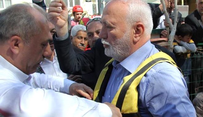 Halk oyunlarının ardından can yeleği giyen, kask takan Elitaş, ilçe halkının alkışları içerisinde Belediye Başkanı Esat Öztürk ile birlikte ilçenin ortasında akan Kocaçay´da rafting yaptı.