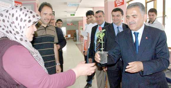 Emlak Vergisini yatırmaya gelen vatandaşlarla sohbet eden ve mevsimlik çiçek ile ayran ikram eden Memduh Büyükkılıç, vergilerini tam ve zamanında yatıran vergi mükelleflerine teşekkür ettiğini kaydetti.
